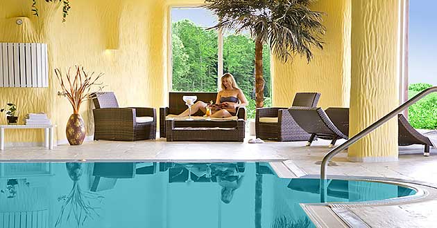 ![]() Hallenbad, ca. 10,50 m Länge und 4,85 m Breite und mit 28°C Wassertemperatur ist geöffnet von 6.30 bis 22 Uhr